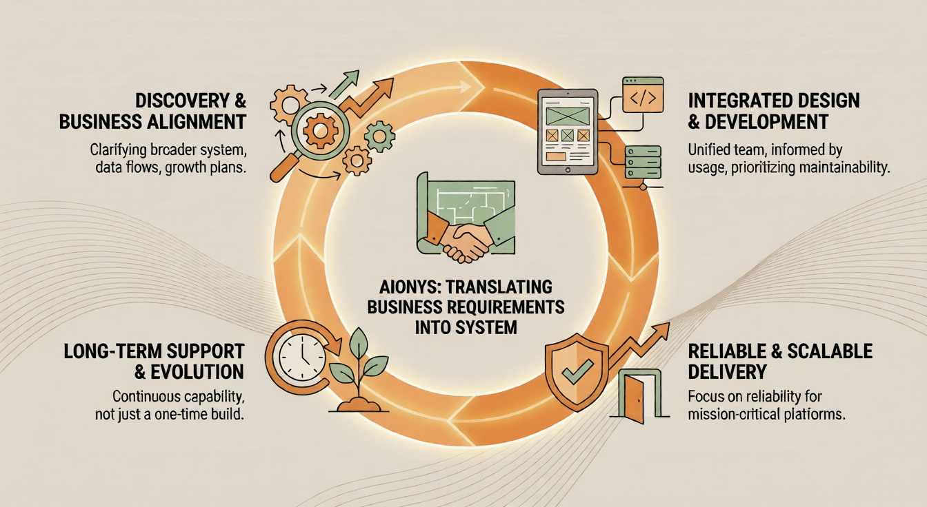 Custom web development services work best when they are treated as a long-term capability, not a one-time build. This is the approach we follow at Aionys.