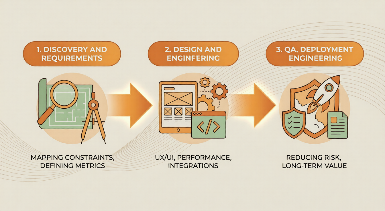 Discovery includes mapping requirements, identifying technical constraints, and defining success metrics. Skipping this phase often leads to scope changes and rework later. We have seen this pattern repeatedly.