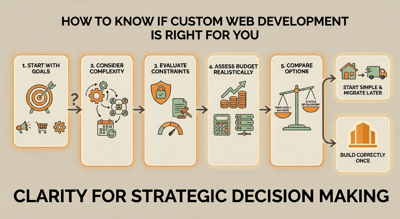 The right choice depends on timing, clarity, and execution. Understanding what custom web development actually involves is the first step toward making that decision responsibly.